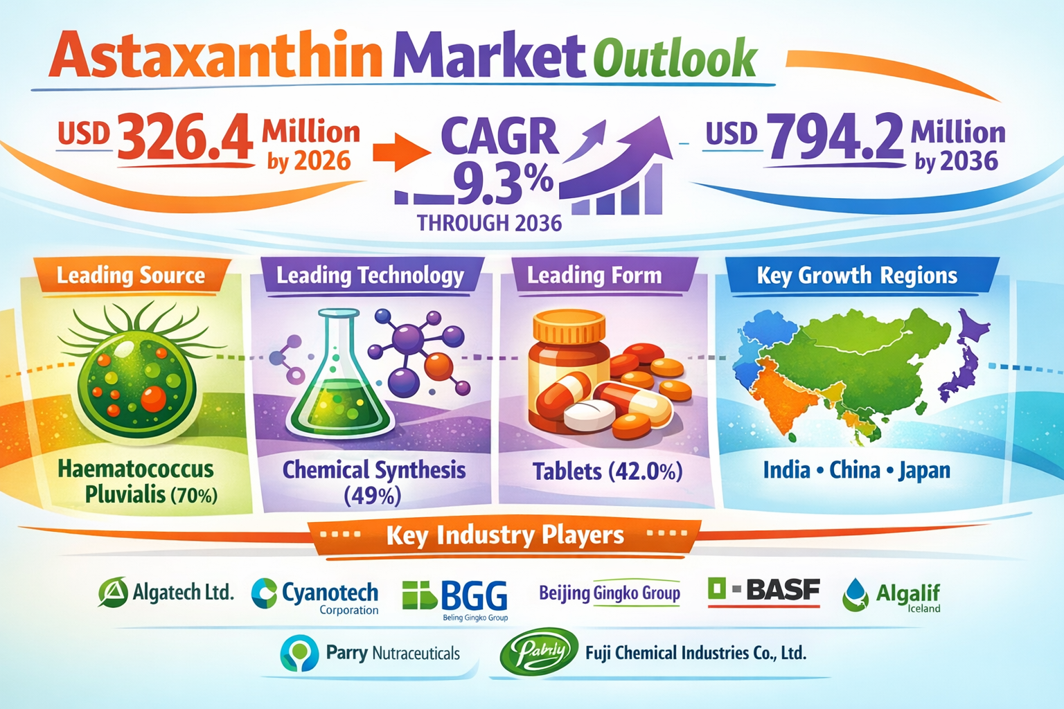 Algatech Ltd, Cyanotech Corporation, Beijing Gingko Group (BGG), BASF SE, Algalíf Iceland ehf, Parry Nutraceuticals, Fuji Chemical Industries Co., Ltd., and others.