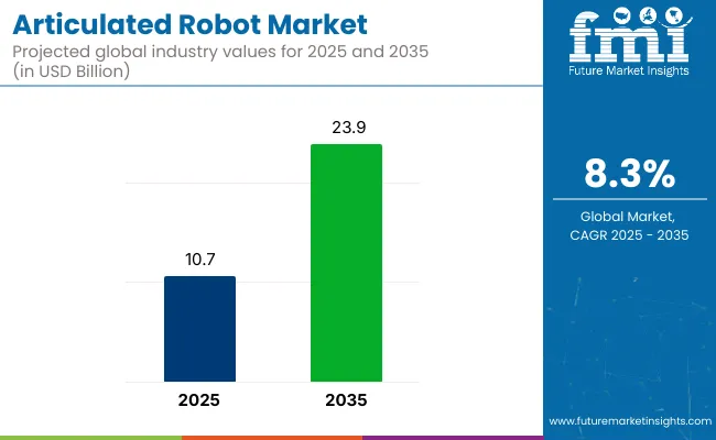 the global articulated robot market is entering a high-growth phase, fueled by rapid advancements in artificial intelligence (AI), Industry 4.0 adoption, and the accelerating need for precision automation across manufacturing ecosystems. According to the latest analysis, the market is projected to grow from USD 10.7 billion in 2025 to USD 23.9 billion by 2035, registering a robust CAGR of 8.3%.