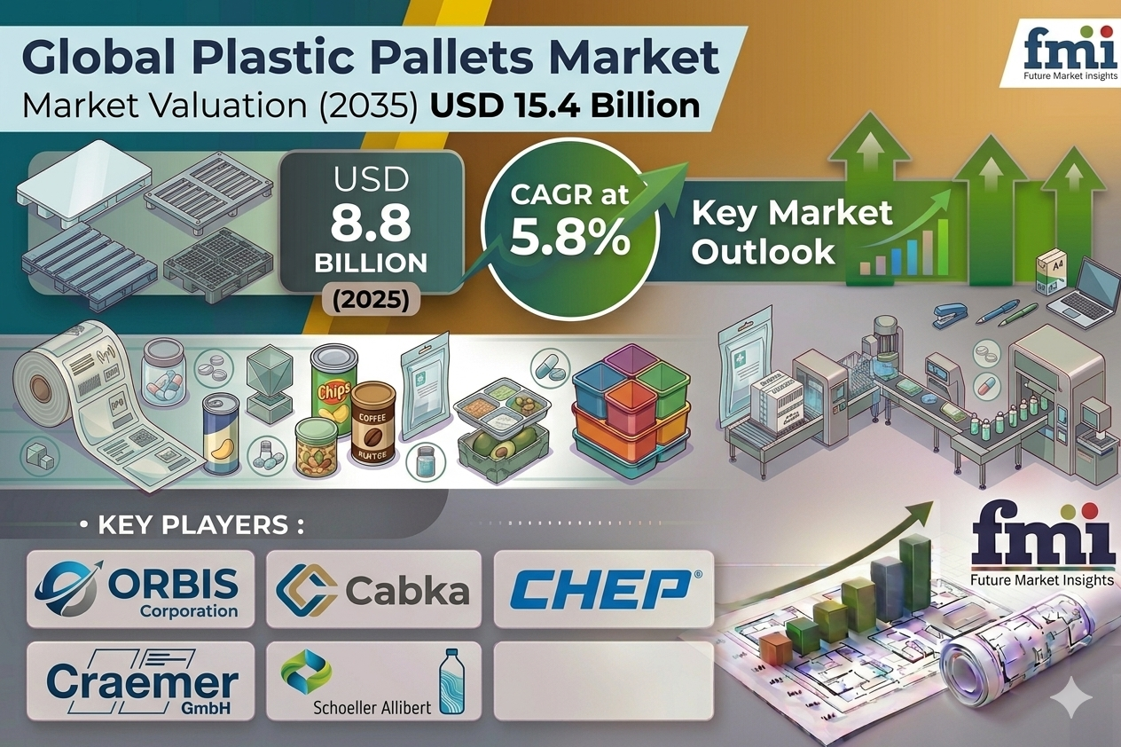 The global Plastic Pallets Market is entering a new phase of accelerated adoption, projected to grow from USD 8.8 billion in 2025 to USD 15.4 billion by 2035, expanding at a CAGR of 5.8%. The market’s evolution reflects a structural shift in global supply chains, where efficiency, hygiene, and sustainability are becoming non-negotiable priorities. As industries transition away from traditional wooden pallets, plastic pallets are gaining traction as long-term, cost-efficient, and regulation-compliant alternatives, particularly in sectors such as food, pharmaceuticals, and e-commerce logistics.