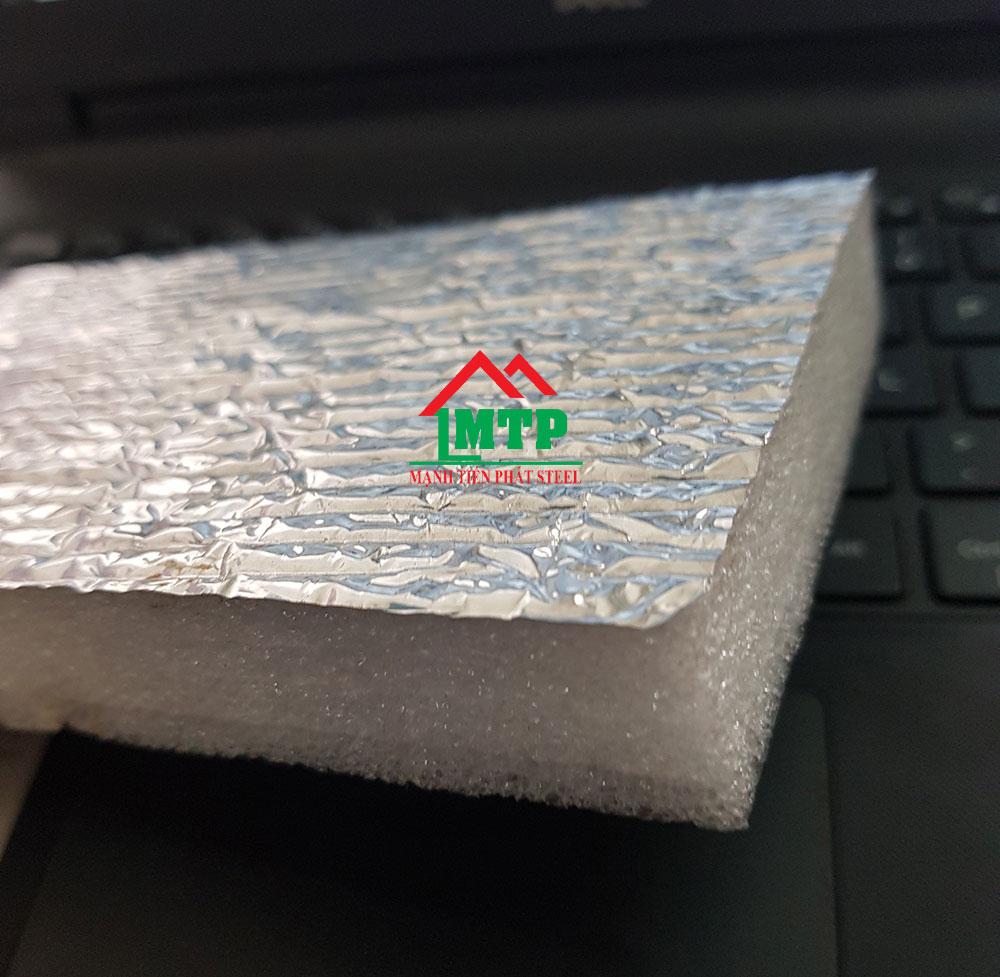 • Lớp PE Foam: Được sản xuất từ nhựa Polyethylene (PE) qua quá trình nhiệt hóa, tạo ra cấu trúc ô kín li ti, giúp tản nhiệt nhanh, cách âm hiệu quả và chống thấm nước.